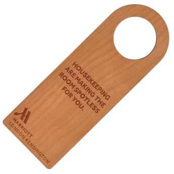 Available in four different shapes, the Do Not Disturb Hangers can be engraved, printed or both to your custom design.